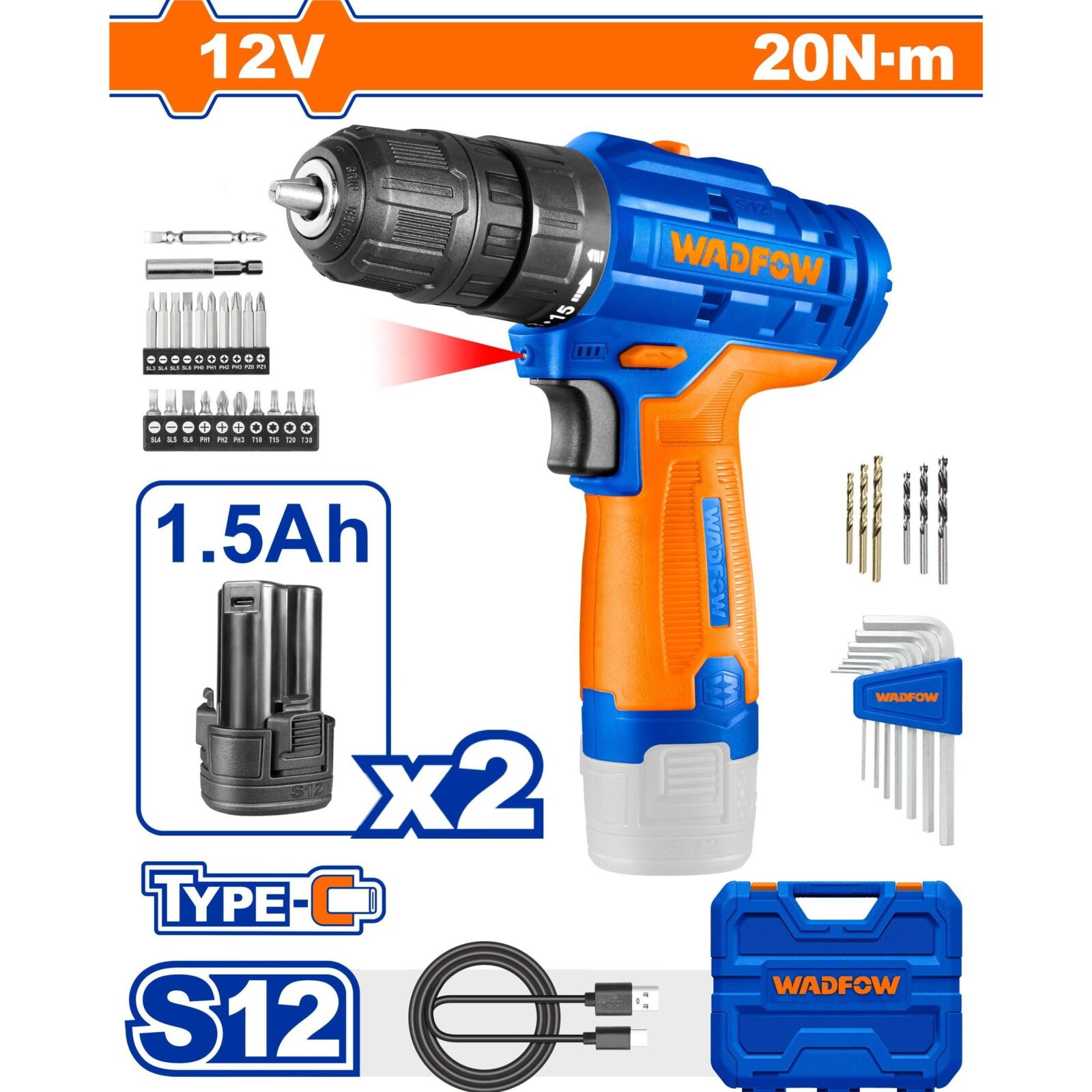دريل بطارية 12 فولت مع شنطة وحبوب WCDS525 (30693) *